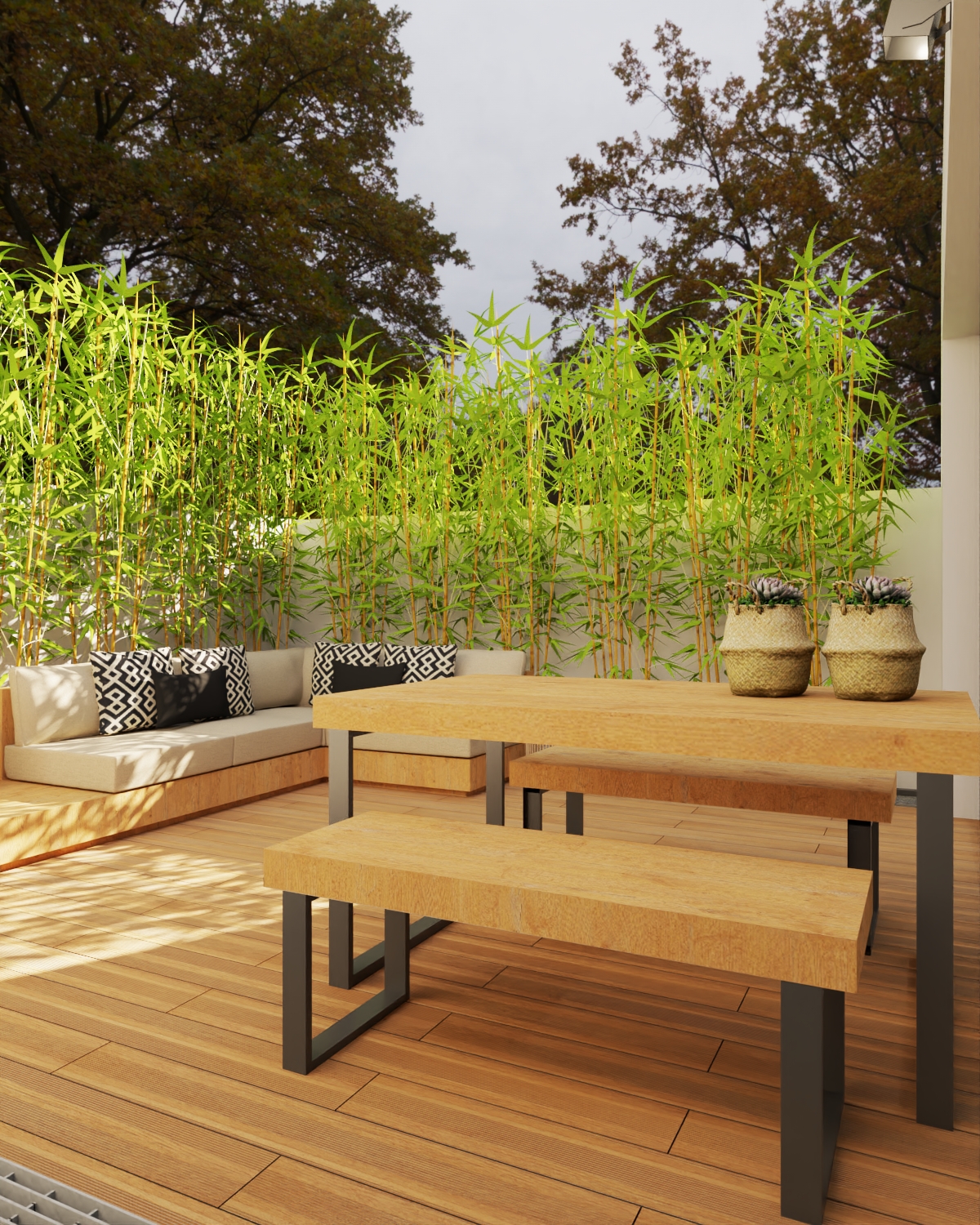 We opted for neutral tones and contrasted them with crafted oak wood in its most natural tone. We also made the most of natural lighting with large windows in the lounge and kitchen, thus making the natural extension of the house.